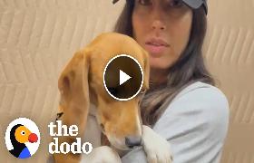 Beagle rescued from a lab won’t leave the corner of her foster mom’s couch — until she gets a massive tennis ball!