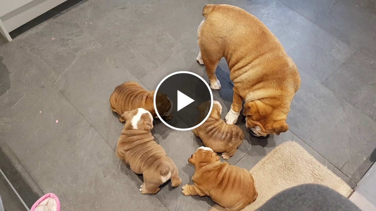 English bulldog meeting puppies after vets appointment